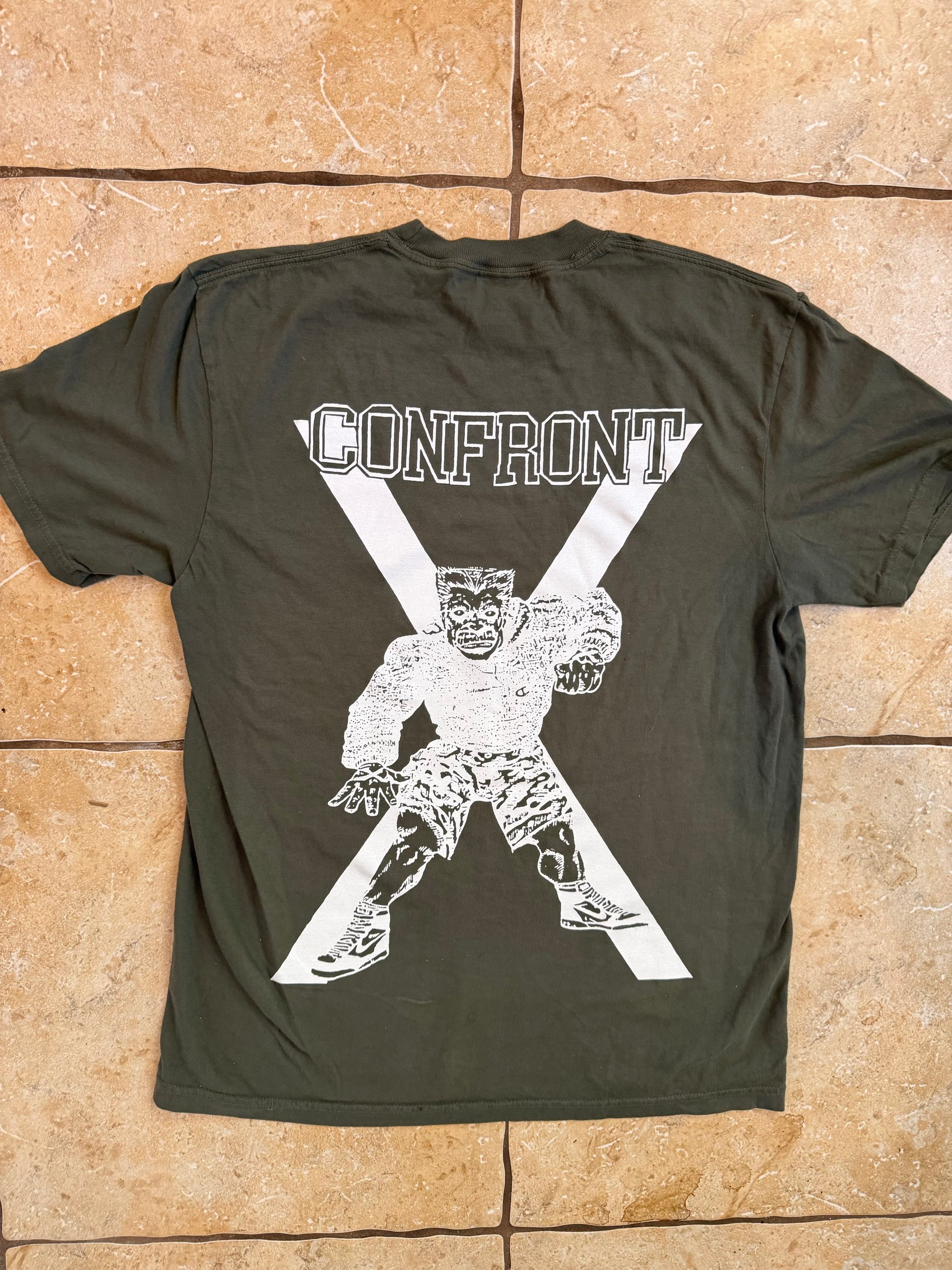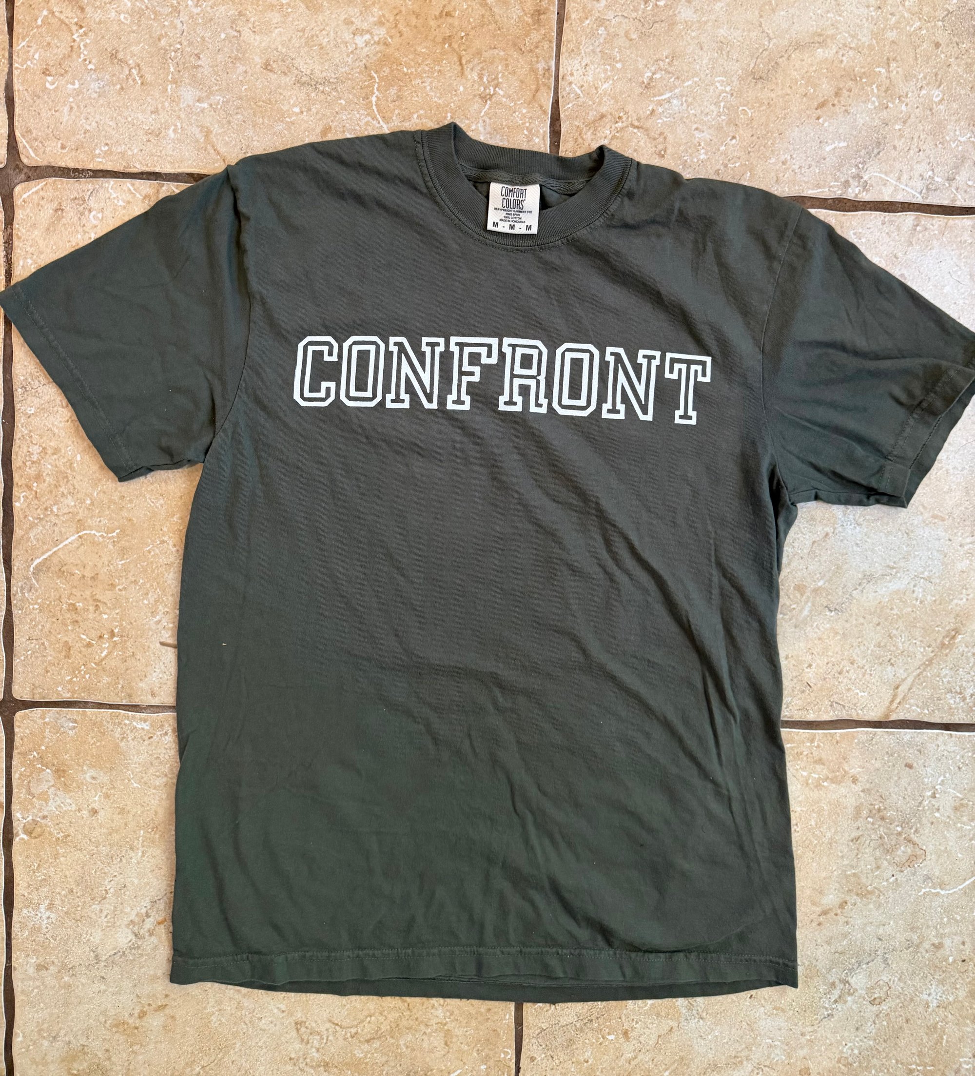 Army Green Confront T- shirt Printed on Comfort Colors limited quantity